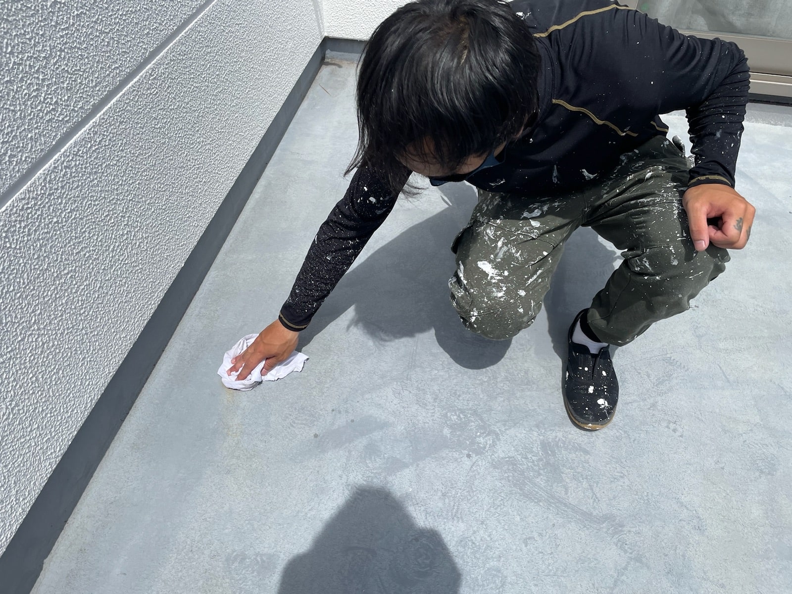 外壁下塗り塗装中