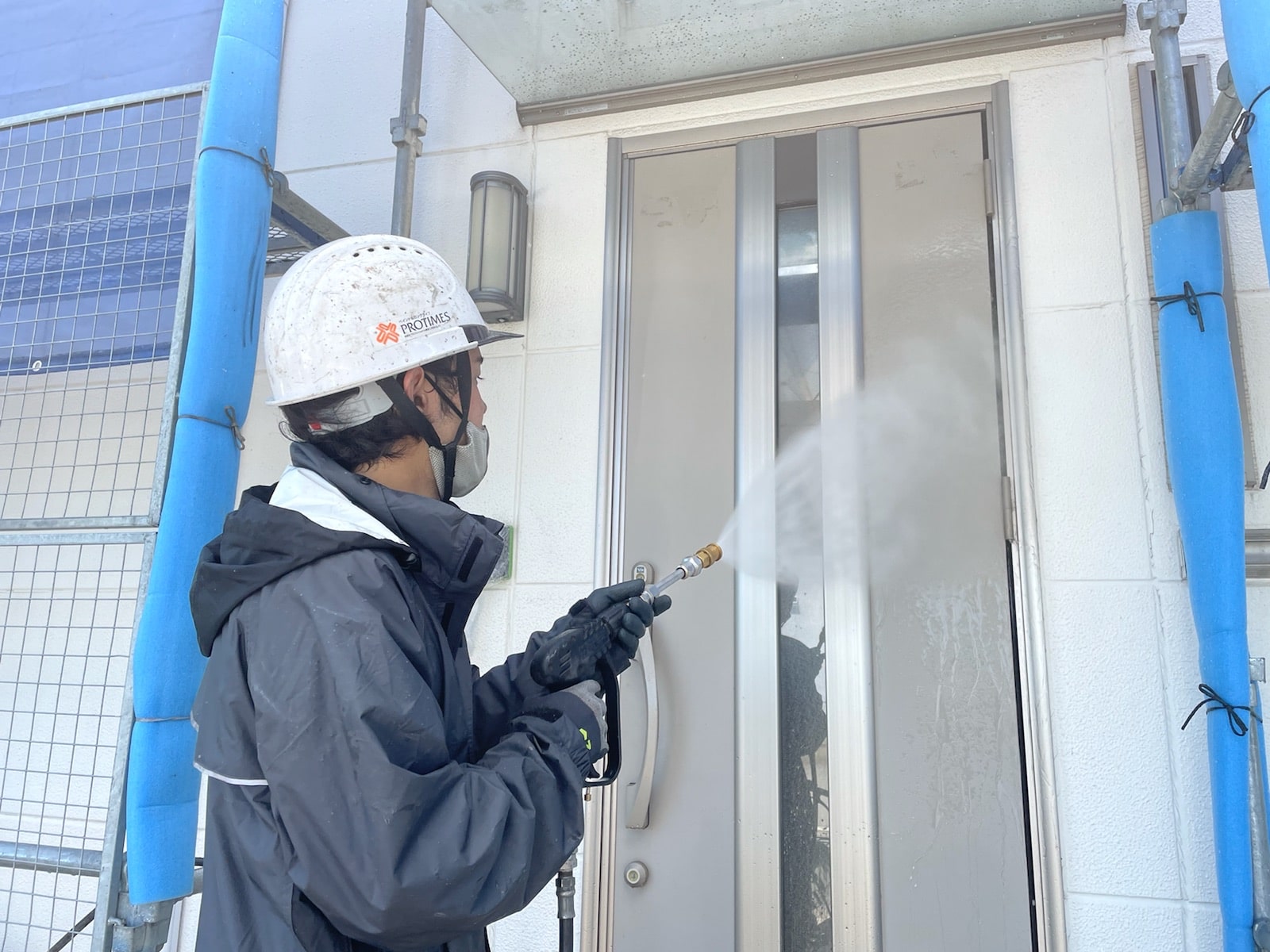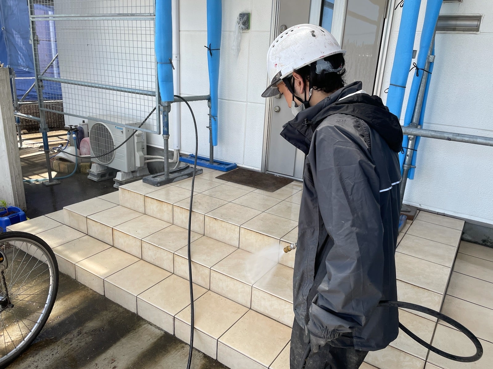 外壁洗浄中