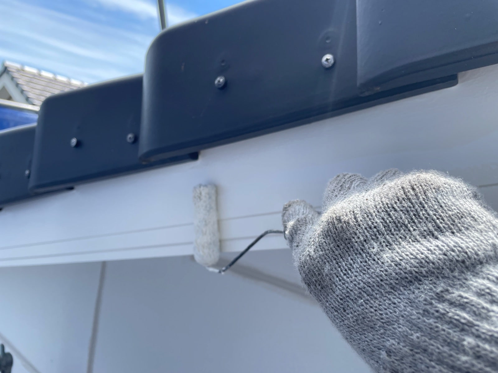 破風・鼻隠し上塗り塗装中