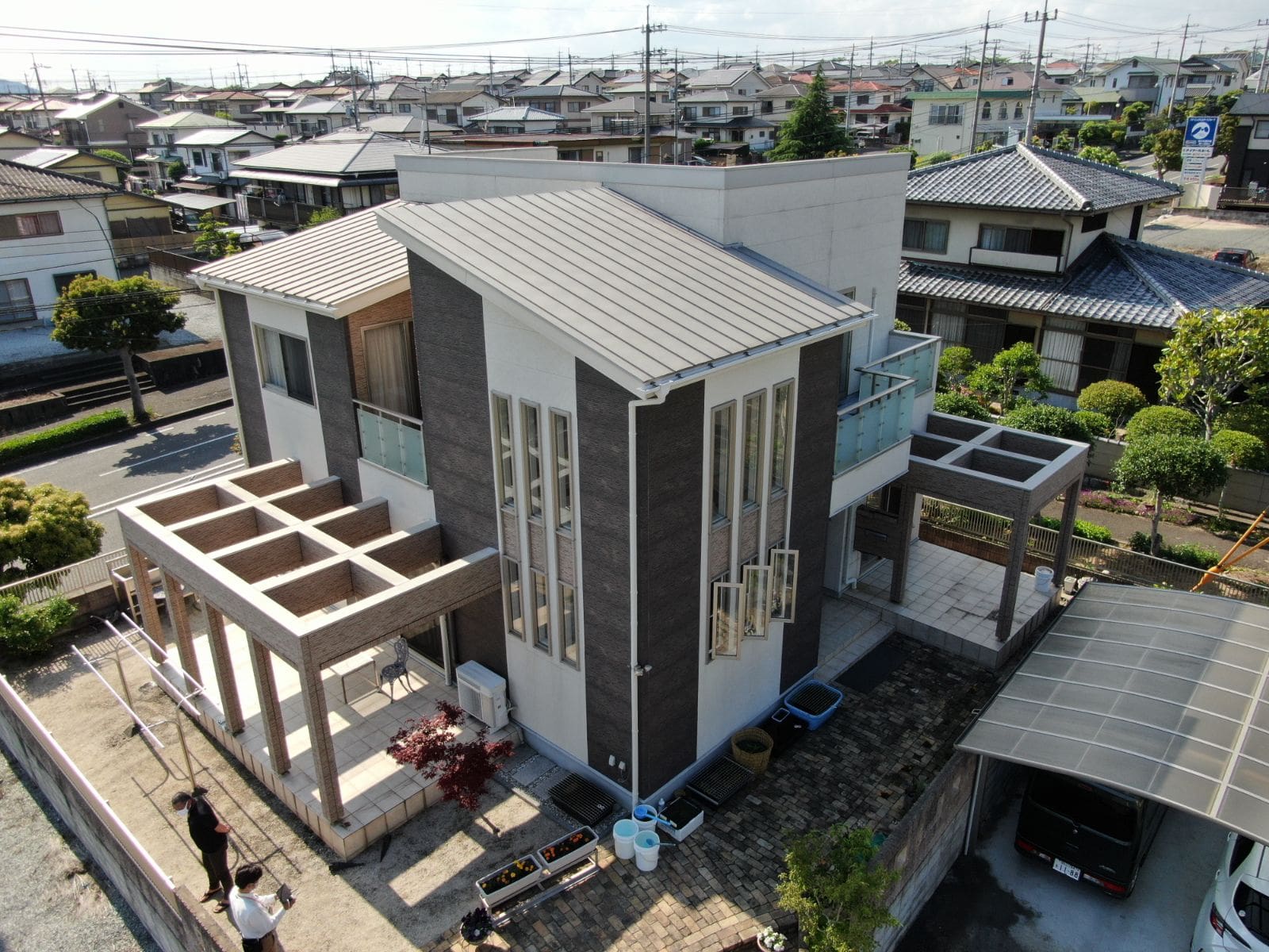 岡山県赤磐市|桜が丘|屋根外壁塗装|こだわりの邸宅を赤のアクセントで再生!超低汚染・無機フッ素で守る🏠✨